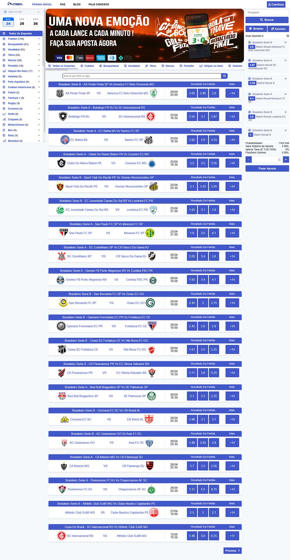 do apostador. A plataforma atualizará automaticamente as ODDs, feed de