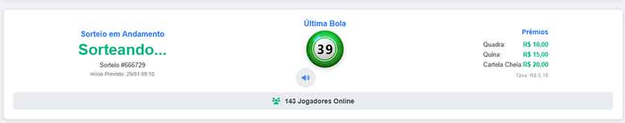 vários sorteios no decorrer do dia este sistema de Bingo Online foi